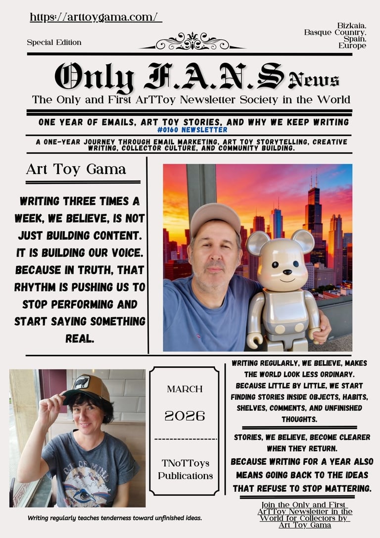 A one-year journey through email marketing, ArT Toy Storytelling, creative writing, collector culture, and community building. ArT Toy Gama Newsletter #160