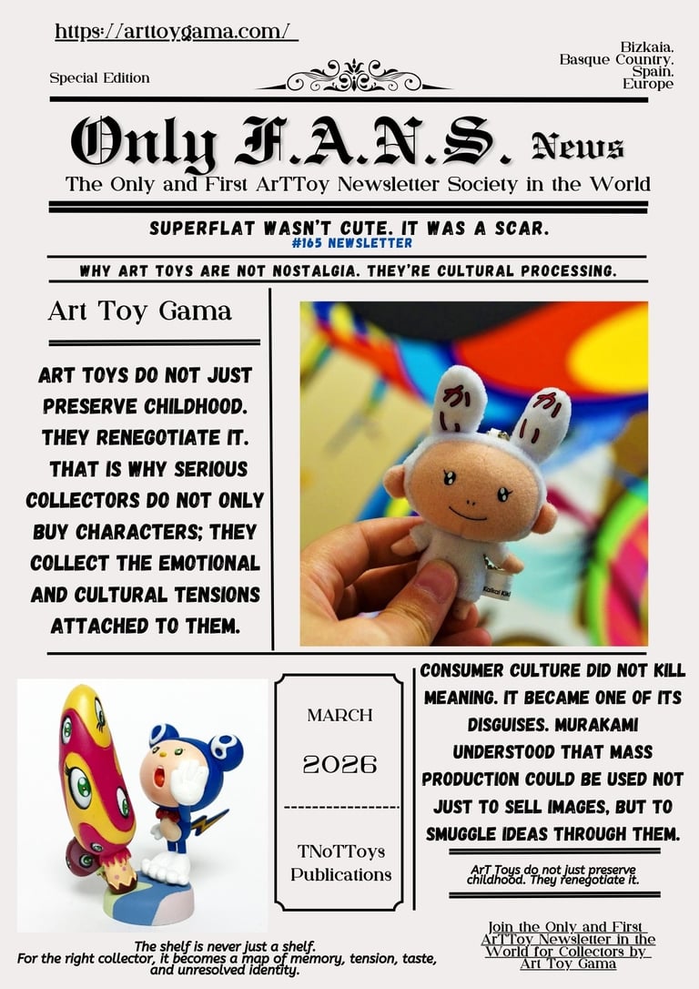 Why ArT Toys Are Not Nostalgia. They’re Cultural Processing. Superflat didn’t soften reality. It repackaged the shock. Murakami ArT Toy Gama Newsletter #165