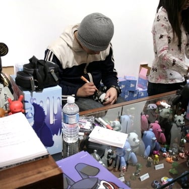 And the ritual was unforgettable. Each time someone purchased a piece, Touma leaned over, pen in hand, and drew directly on the toy. Not mass production, but intimacy in ink; every collector leaving with an object that was no longer the same as it was minutes before.